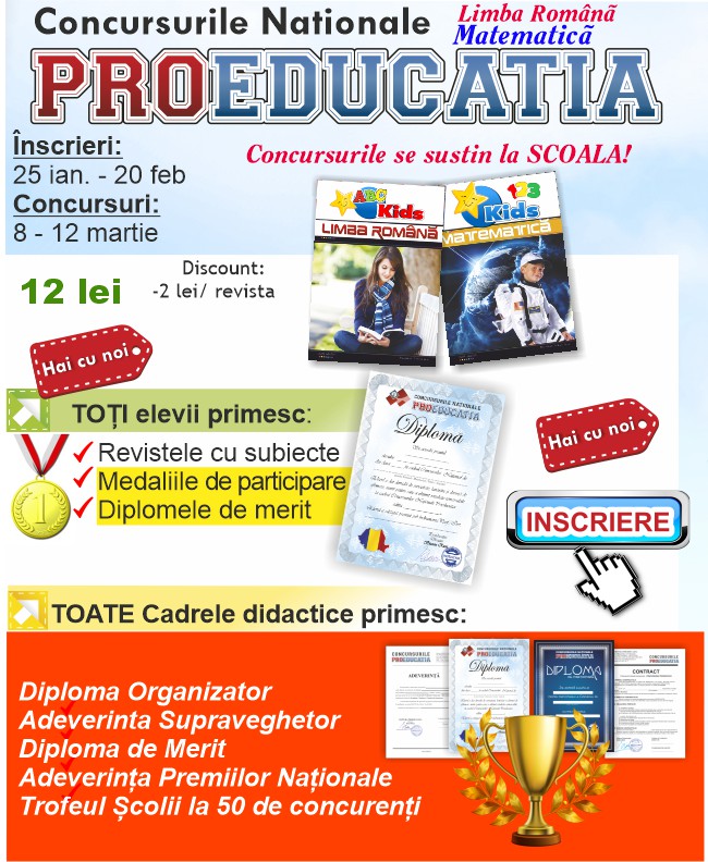Înscrieri: 25 ian. - 19 feb. Concurs: 1-15 martie